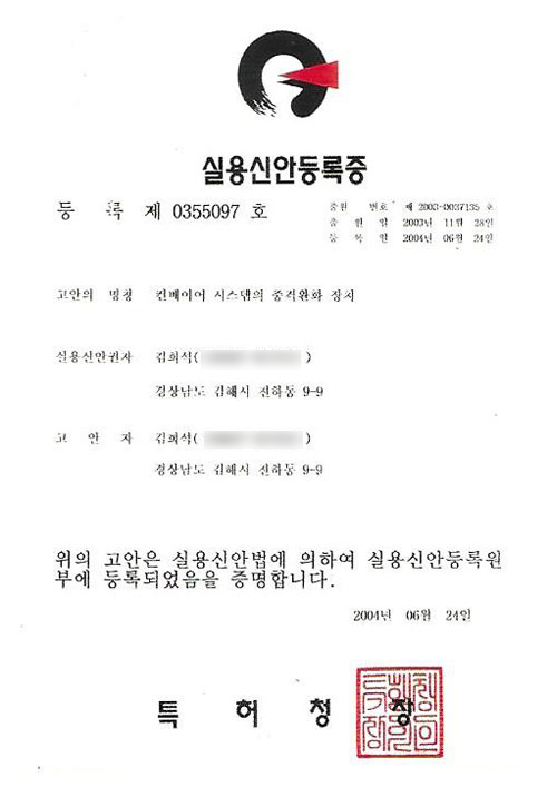 실용신안 등록증 > 인증서 | (주)동일콘베어산업